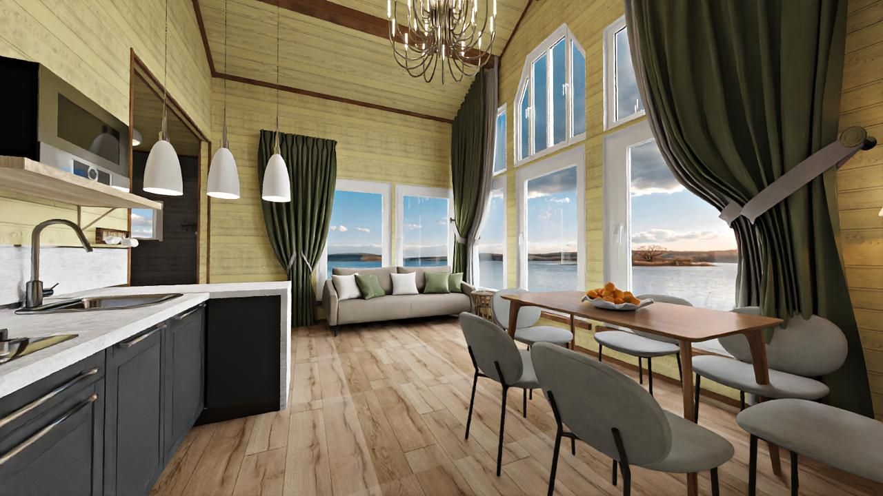 • Панорамные виды: Из каждого коттеджа открывается захватывающий вид на озеро, позволяя вам наслаждаться красотой карельской природы прямо из своего дома.